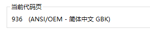 由于Windows中文系统中,命令提示符默认的编码是 "简体中文 GBK",代码页编号为936。