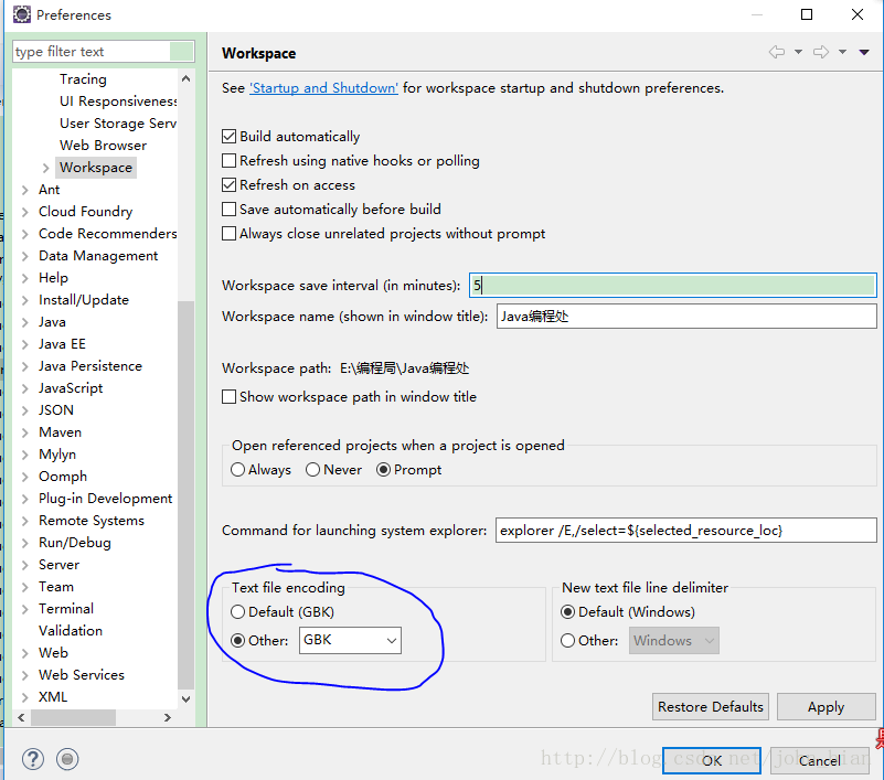 打开后选择第一个General里面的最后一个Workspace,然后在右边设置: