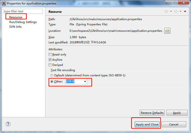 第二步:在上一步的基础上还显示乱码那么就是Properties文件本身字符集设置问题,右击properties文件,将字符集设置成UTF-8,如下图所示: