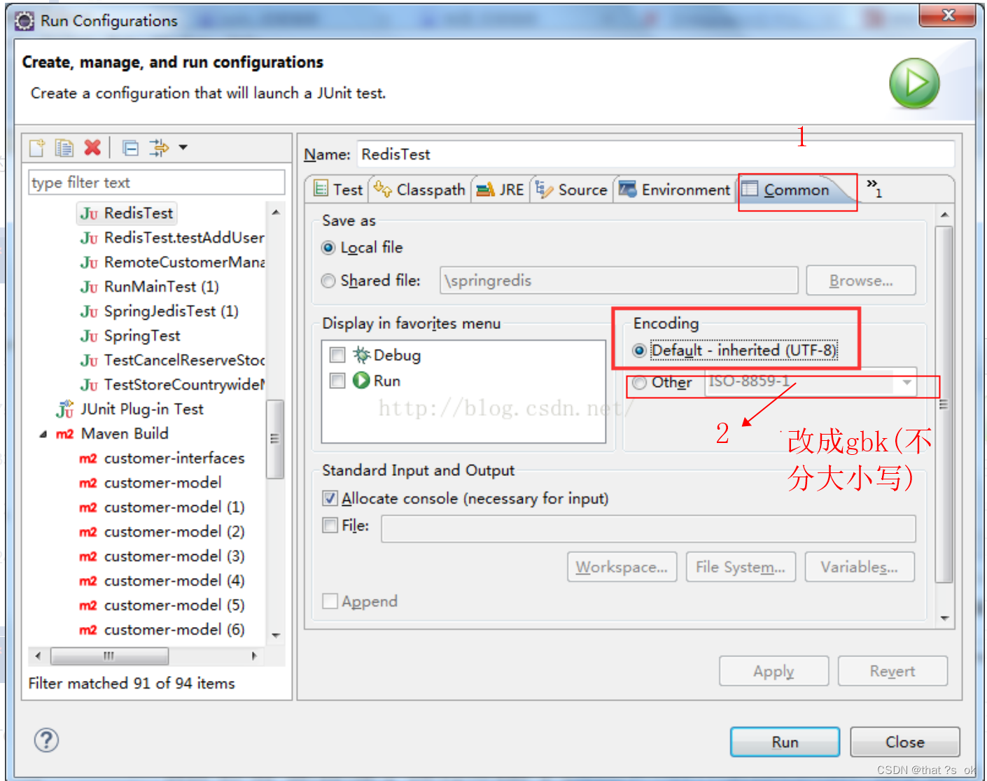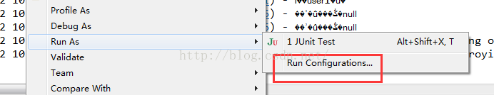 控制乱码无论怎么样改都没用,通过百度才知道;选择要运行的项目-右键: Run As --> Run Configurations