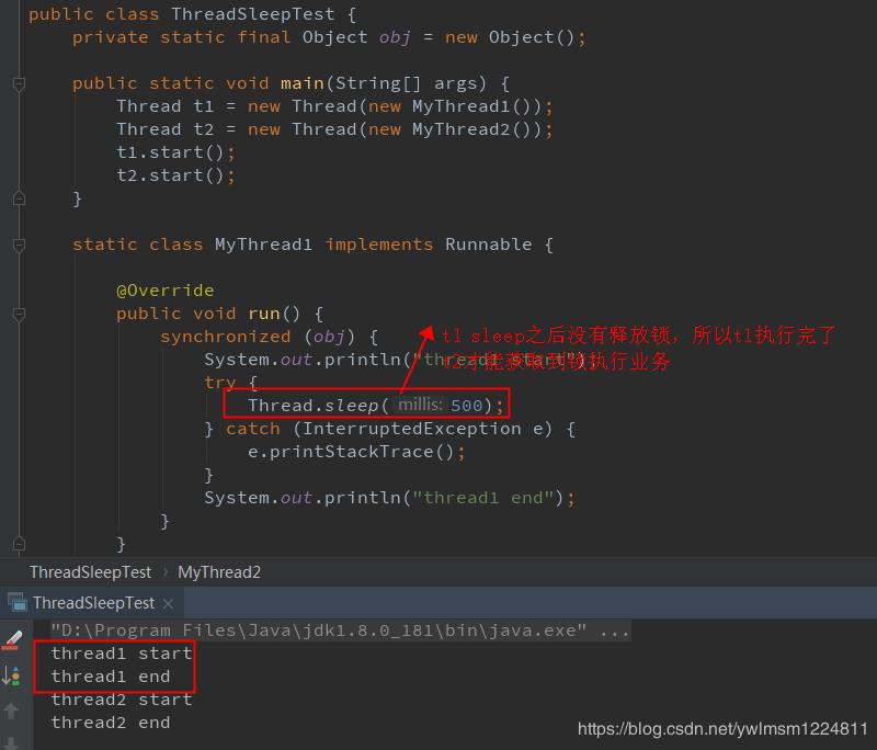 System.out.println("thread1 end");