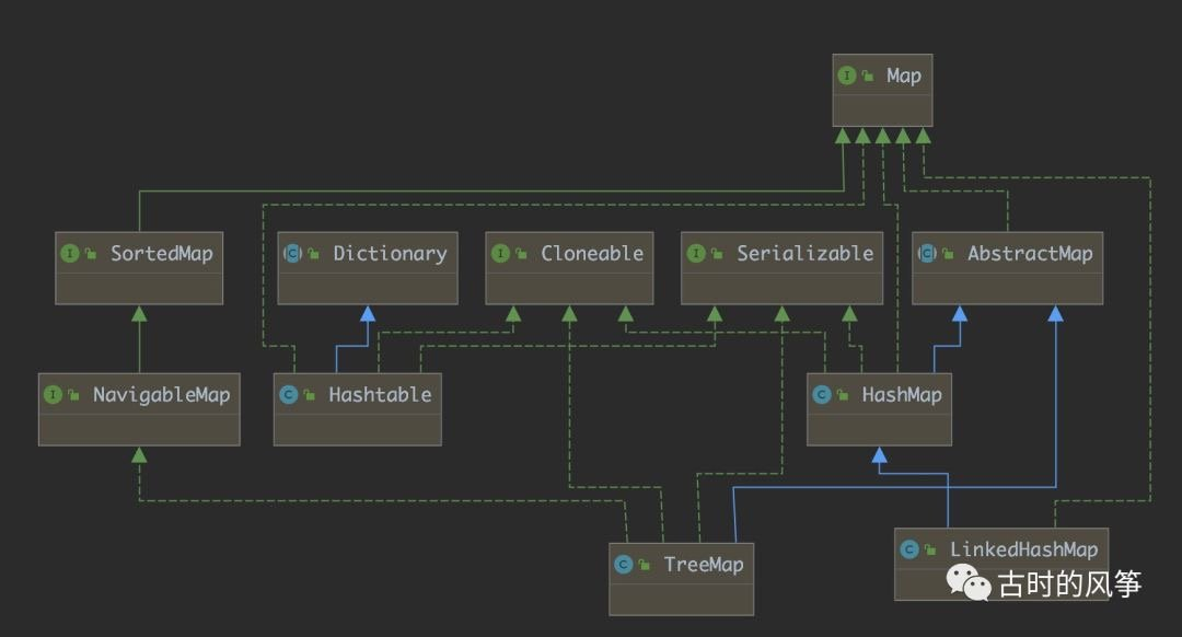 先来看一下整个 Map家族的集成关系图,一看东西还不少,但其他的可能都没怎么用过,只有 HashMap 最熟悉。
