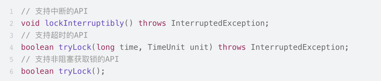 (2)支持超时获取锁,tryLock(long time,TimeUnit unit)方法。