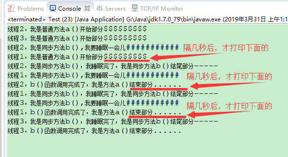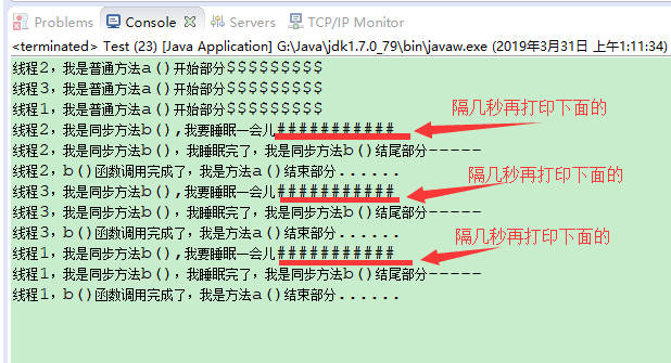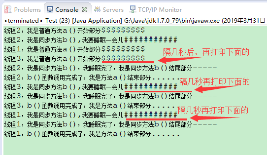 System.out.println(Thread.currentThread().getName() + ",我是同步方法b(),我睡眠完了,我是同步方法b()结尾部分-----");