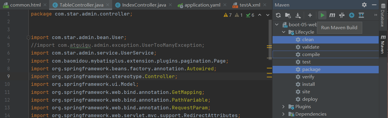 Ctrl选中clean和package再点击Run Maven Build进行打包