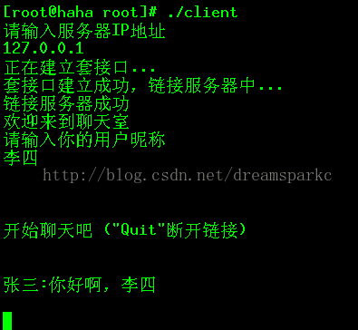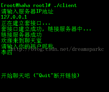 - 若连接server 的socket建立成功,返回提示信息