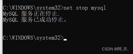 ⏹️在cmd中输入net stop mysql , 关闭服务