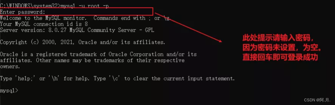 8.修改登录密码(初始化时未指定密码,密码为空)