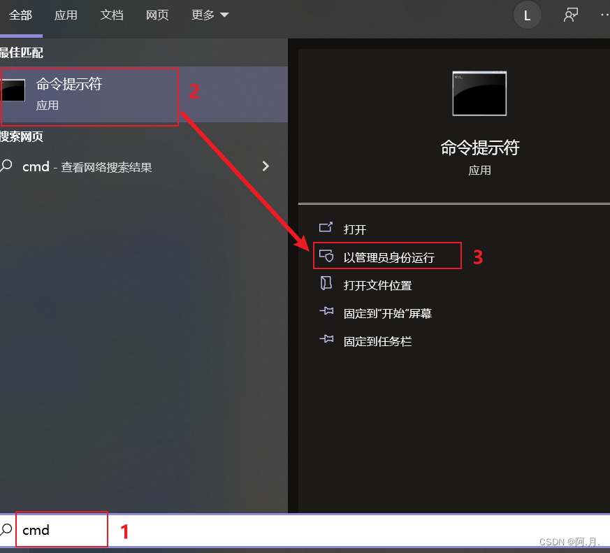 ⭐⭐⭐以管理员身份运行命令提示符(一定要以管理员!管理员!管理员!身份运行)