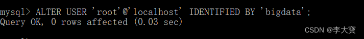 ALTER USER 'root'@'localhost' IDENTIFIED BY 'bigdata';