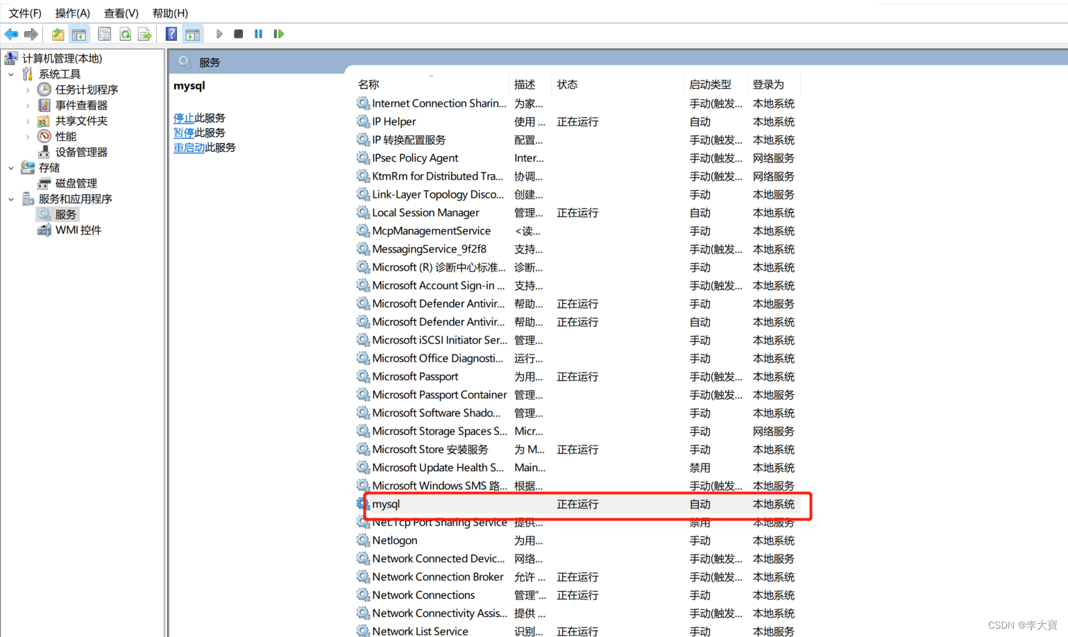 - 以管理员身份运行,输入sc query mysql命令,查看名为mysql的服务