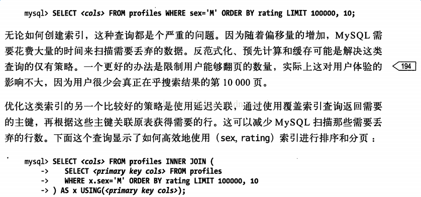 但是我看了下《高性能MySQL》也提到了延迟关联,是这样的