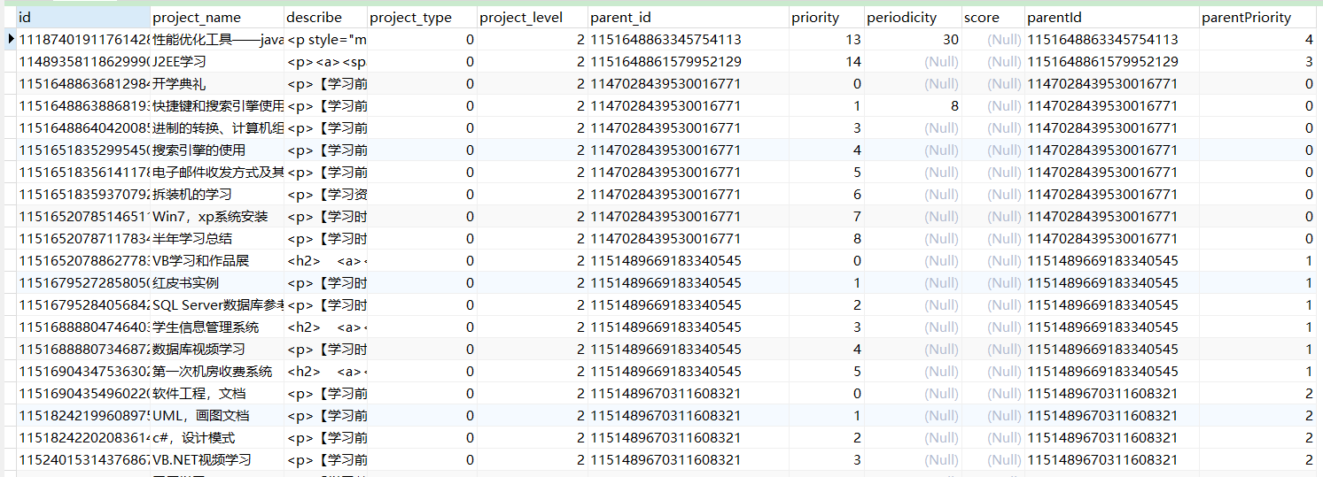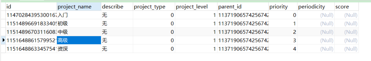 (b) 查询t_project表然后左连接刚才查的项目的等级为1和项目类型为0的Id和优先级,然后条件为 Parent_id = p2.parentId,这然查找的是