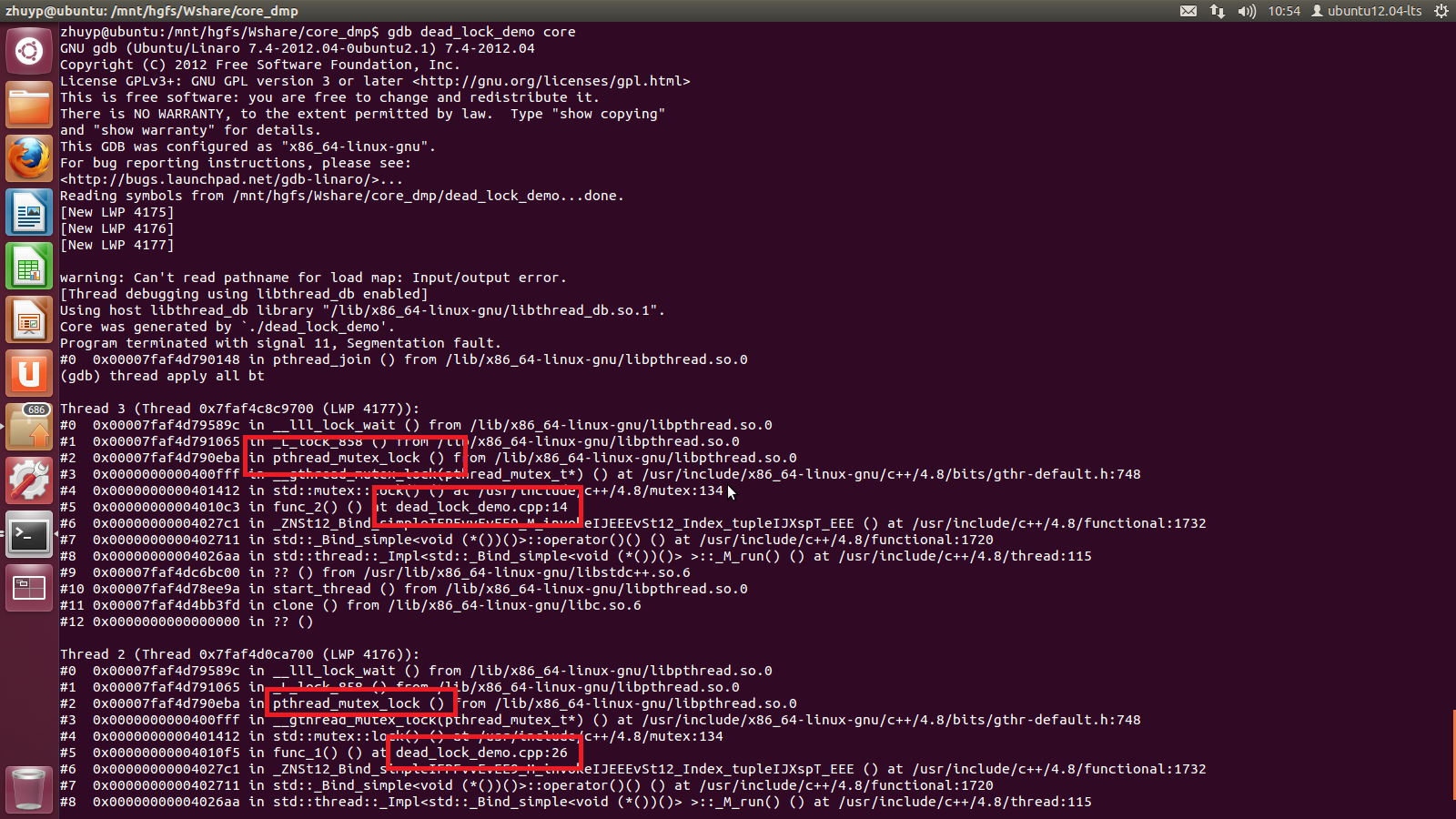 $> gdb dead_lock_demo core