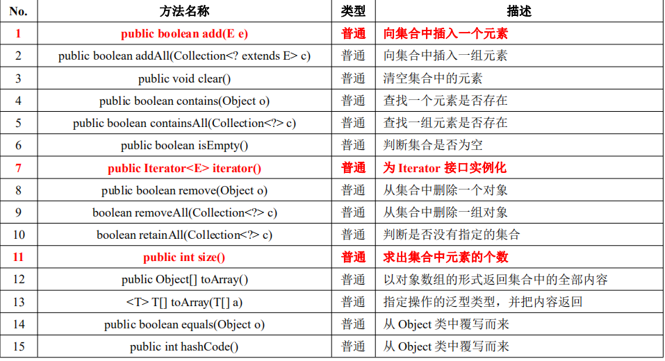 本接口中一共定义了 15 个方法,那么此接口的全部子类或子接口就将全部继承以上接口中的方法。