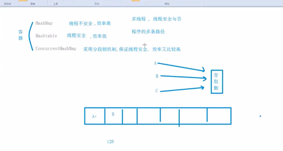 ConcurrentHashMap采用的是哈希表进行储存,首先通过对象数组的索引进行存储数据,这一步是不用顺序操作的,能够同步进行,因为数组的各个索引内容互不干扰。而在数组内部的哈希桶中,是采用顺序操作的方式,来保证数据不发生错乱。