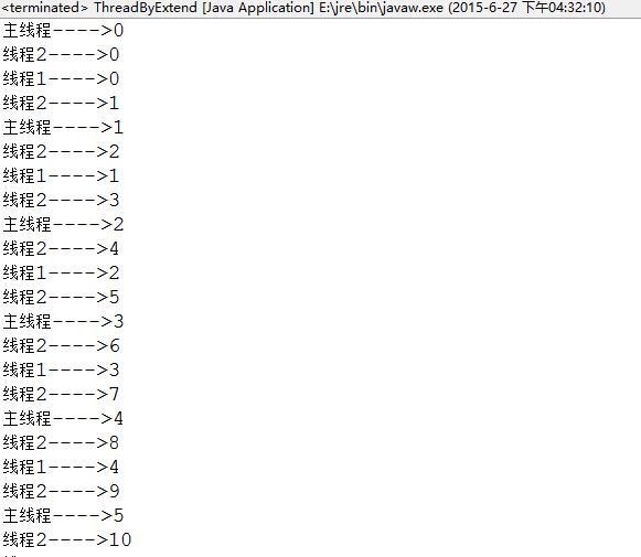 System.out.println("主线程---->"+i);