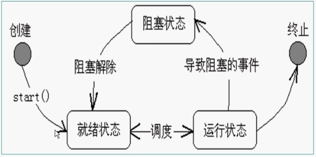 注:当已经从创建状态到了运行状态,再次调用start()方法时,就失去意义了,java运行时会提示线程状态异常。