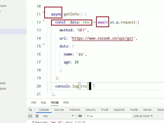 于是可以使用async await 来优化 {data:res} 将data属性重命名为res 简化名字