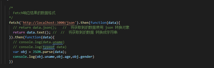 - 用fetch来获取数据,如果响应正常返回,我们首先看到的是一个response对象,其中包括返回的一堆原始字节,这些字节需要在收到后,需要我们通过调用方法将其转换为相应格式的数据,比如`JSON`,`BLOB`或者`TEXT`等等