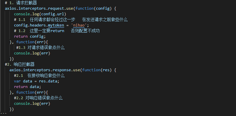 - 响应拦截器的作用是在接收到响应后进行一些操作