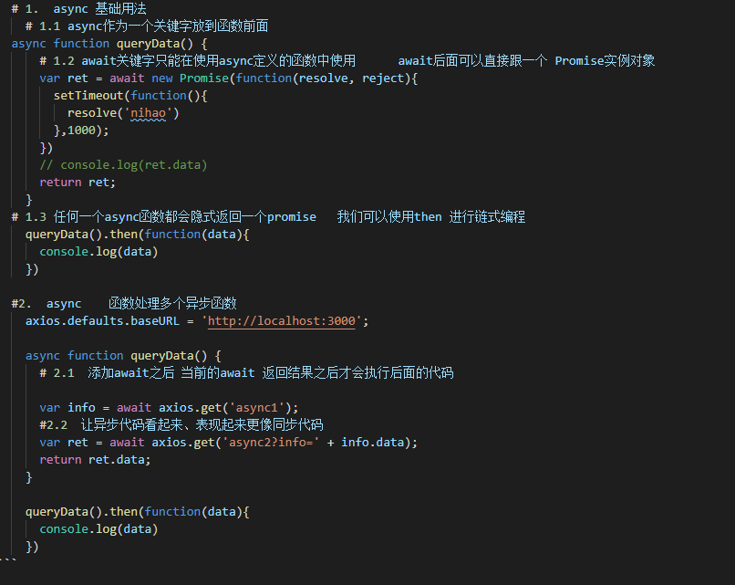 1. async作为一个关键字放到函数前面,任何一个`async`函数都会隐式返回一个`promise`