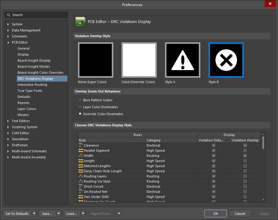 Choose DRC Violations Display Style-选择DRC冲突显示风格