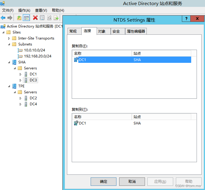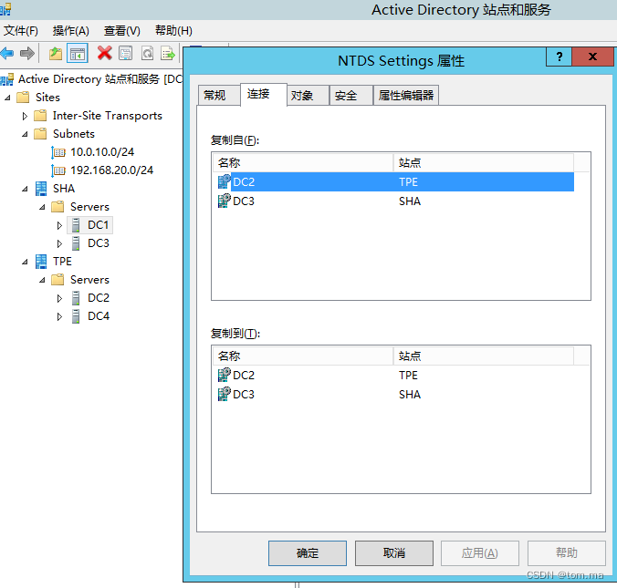 这里是 DC1 DC3 是 SHA 站点,DC2 DC4 是 TPE 站点
