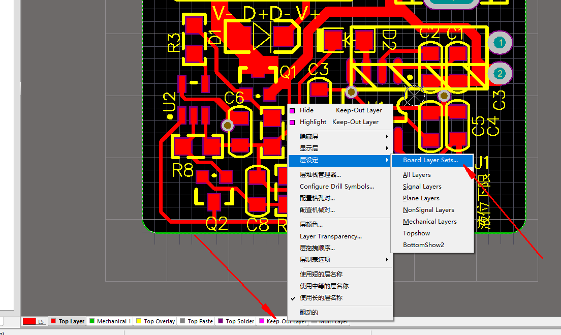 右键单击下面层的选项卡。如图“层设定”->"Board Layer Sets"