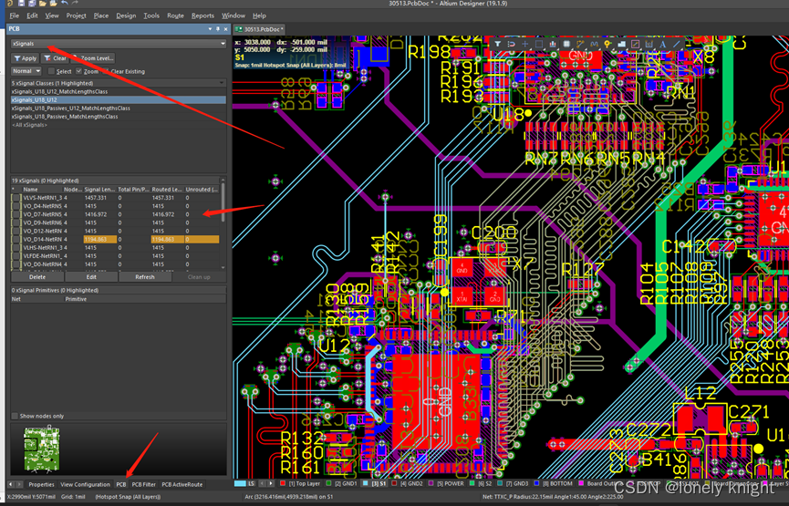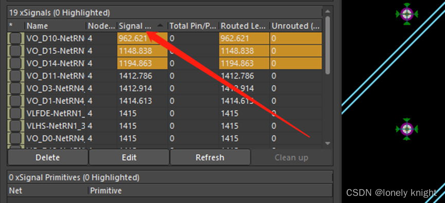 找到最长的走线并高亮,调整走线到最短距离,避免因为最长走线有绕线行为,增加整体的信号长度
