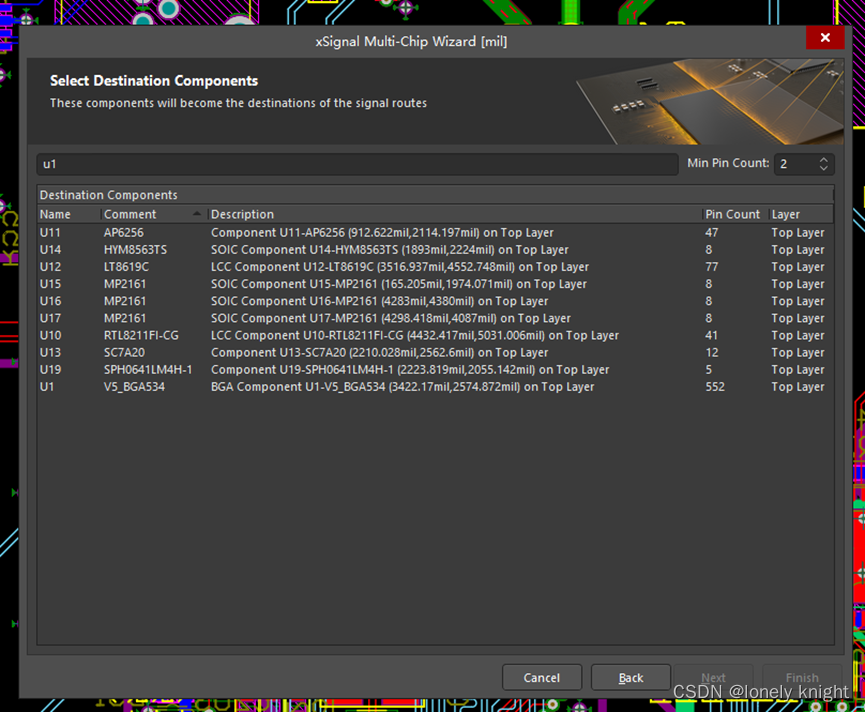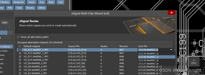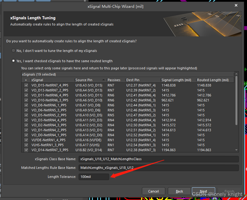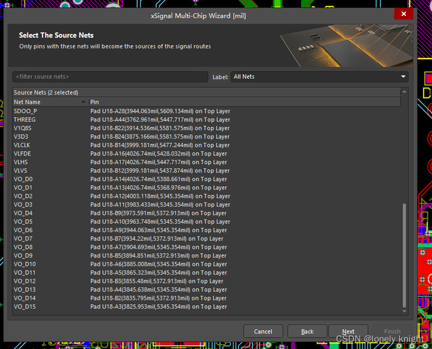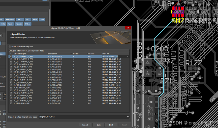 选择器件后NEXT会显示所有的网络名称,选择需要走等长的网络