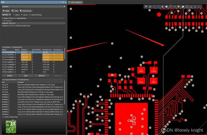 完成规则设置后,在PCB-xSignals中可以看到刚才设置的等长网络