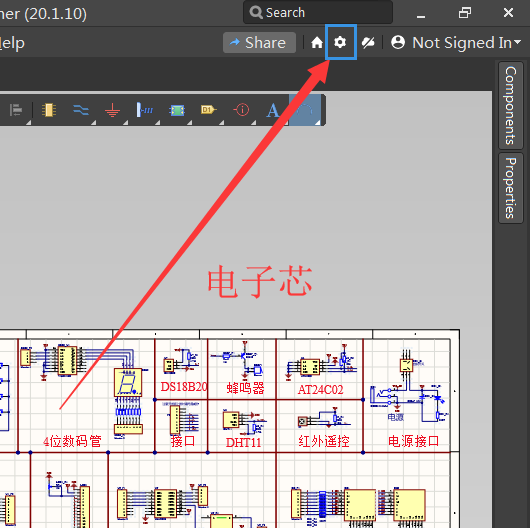 打开Altium Designer,点击右上角小齿轮,进入Preferences。