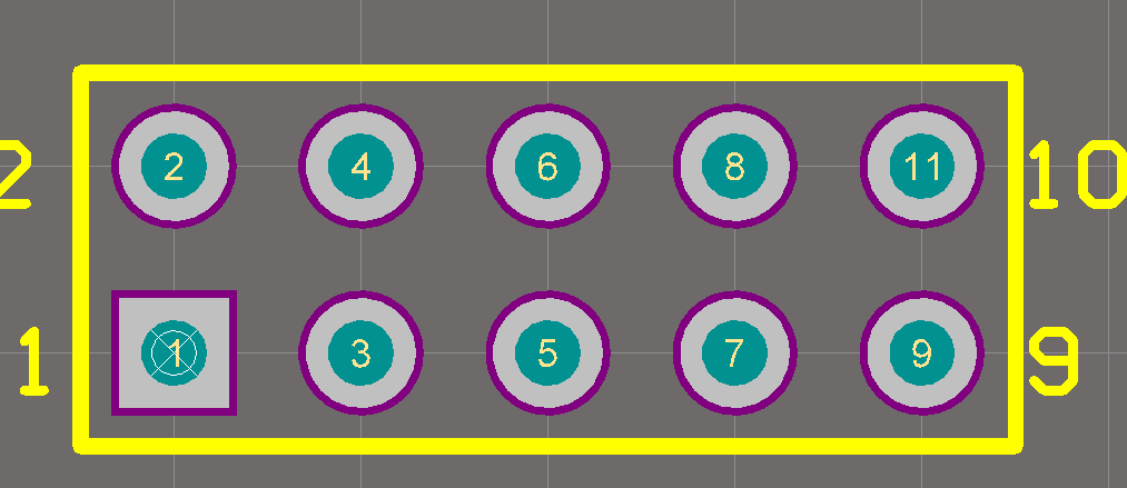 我给一个5*2的插座,标号为1-10,而PCB里面对应的它也为1-10,如果我改10为11,导入到PCB的时候就会出错。