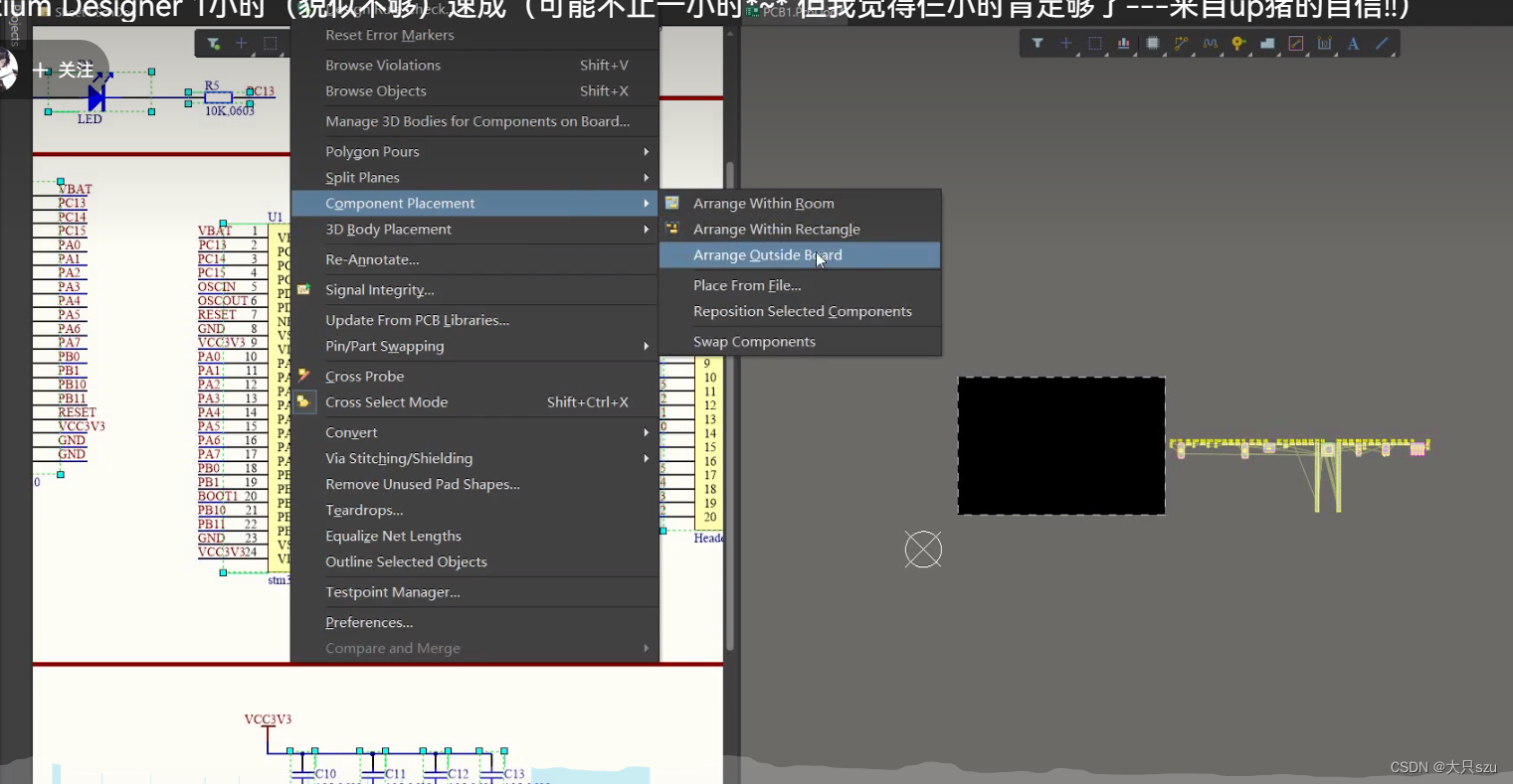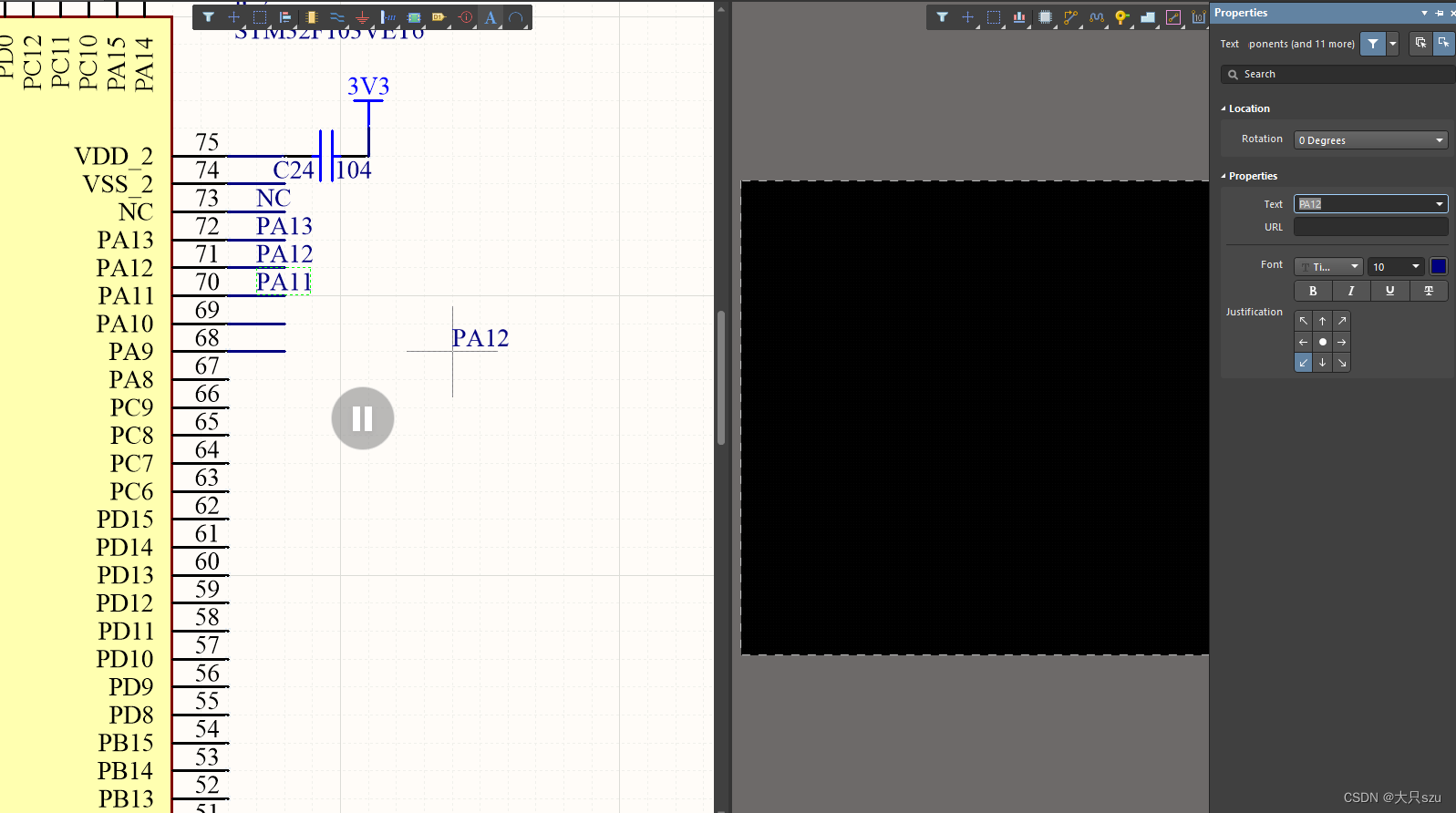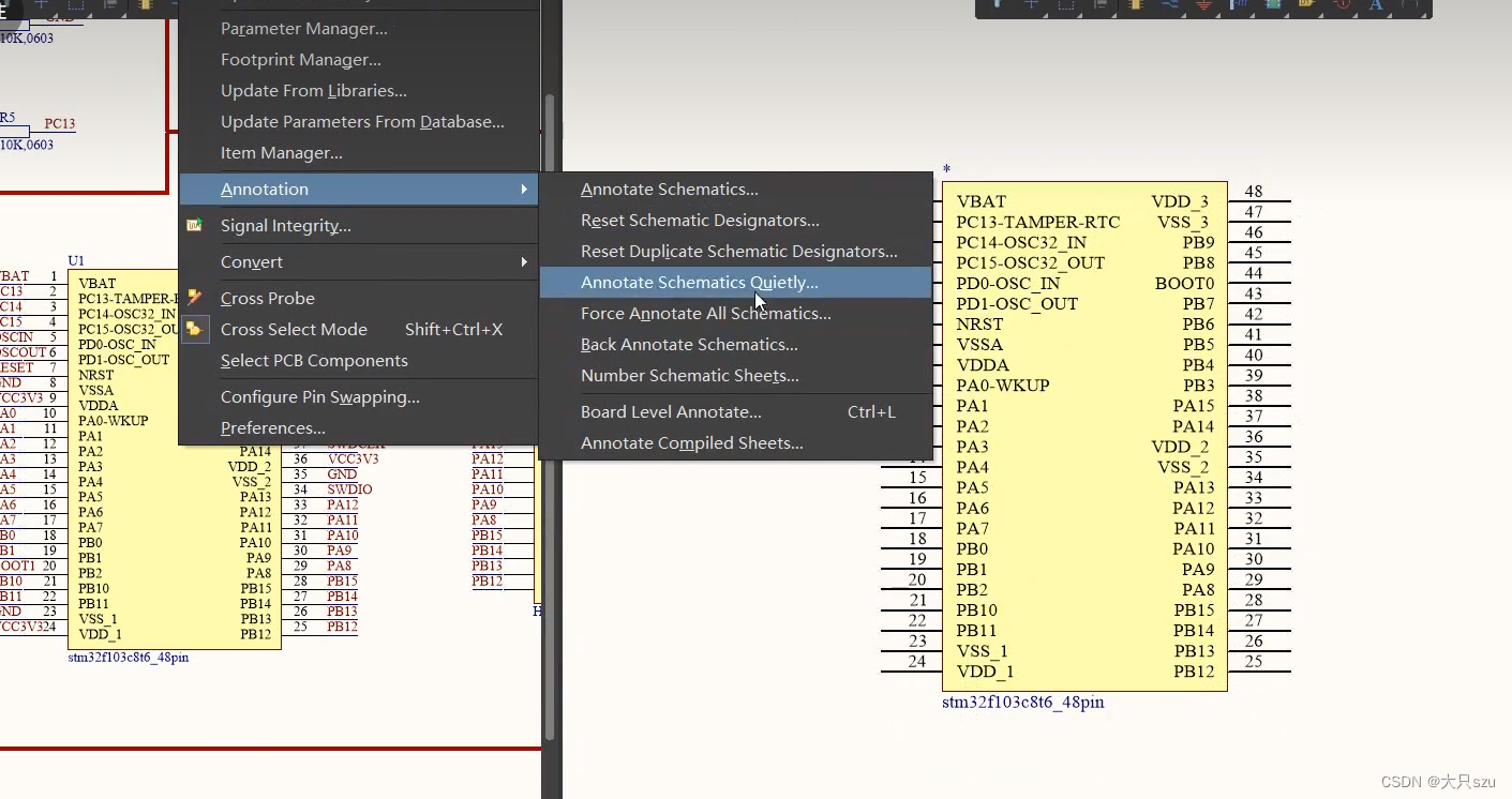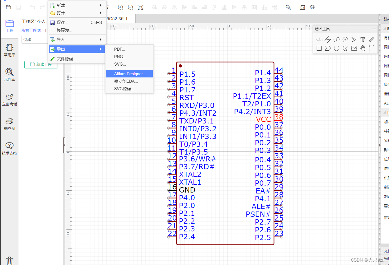 此时无法从导入的文件中简单复制原理图到stm32.SchLib中,那么我们先把原理图复制stm32.SchDoc中