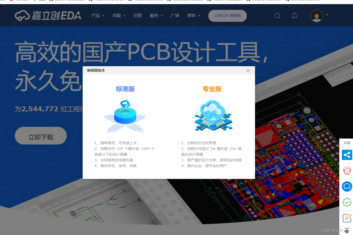 在下图的最右侧我们可以看到器件的原理图与pcb图