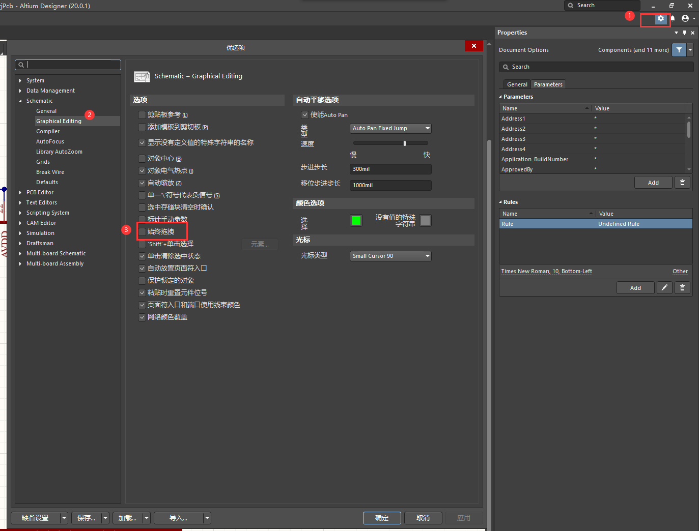 在AD20的原理图中,选中元器件后,按空格键时元器件无法旋转的问题