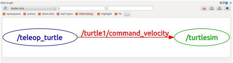 允许我们看看turtle_teleop_key node. 发布的命令速度数据;