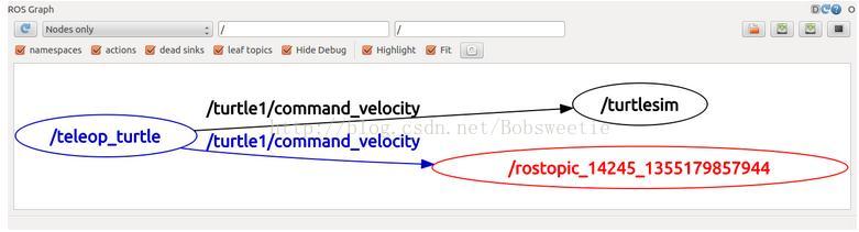 对于ROS Hydro和之后的版本,这个数据在发布在/turtle1/cmd_vel topic,在新终端,运行: