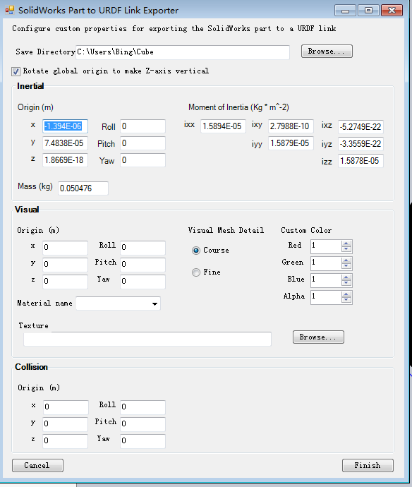 以上就是感性菠萝最近收集整理的关于ROS入门(二) Solideworks生成URDF 并导入rviz的全部内容,更多相关ROS入门(二)内容请搜索靠谱客的其他文章。
