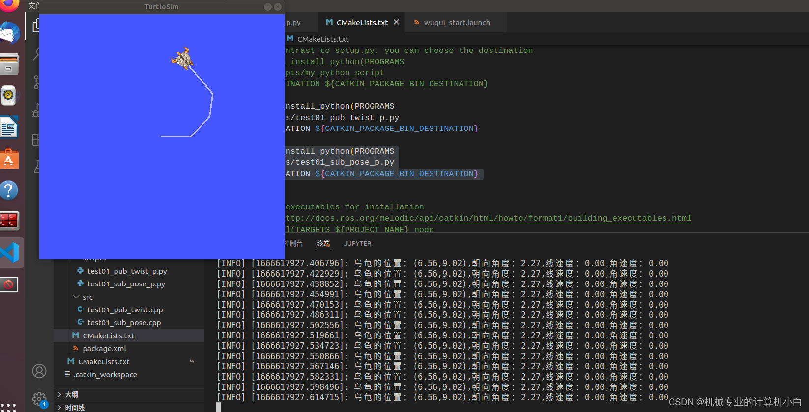 (1条消息) 13.ROS编程学习:话题发布控制乌龟_机械专业的计算机小白的博客-CSDN博客