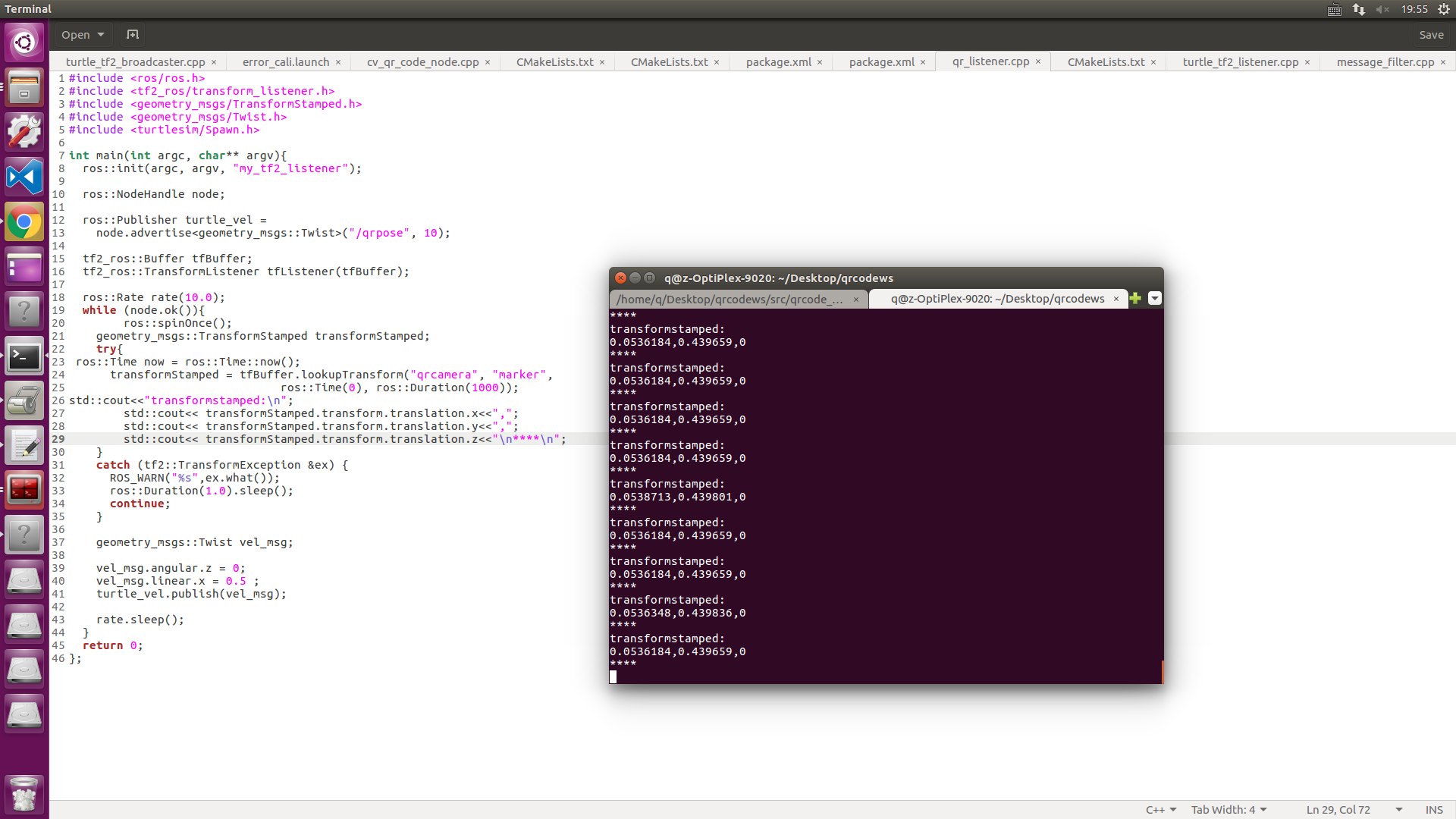 $rosrun tf tf_echo qrcamera marker