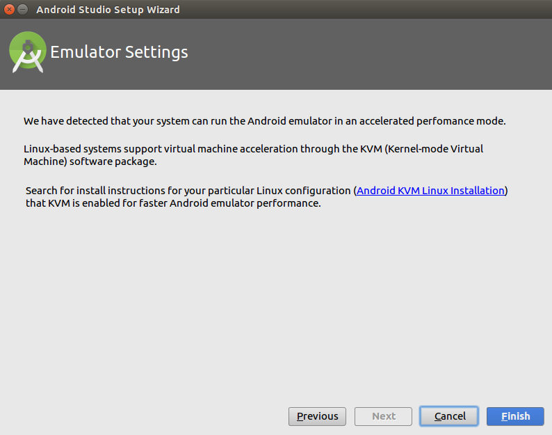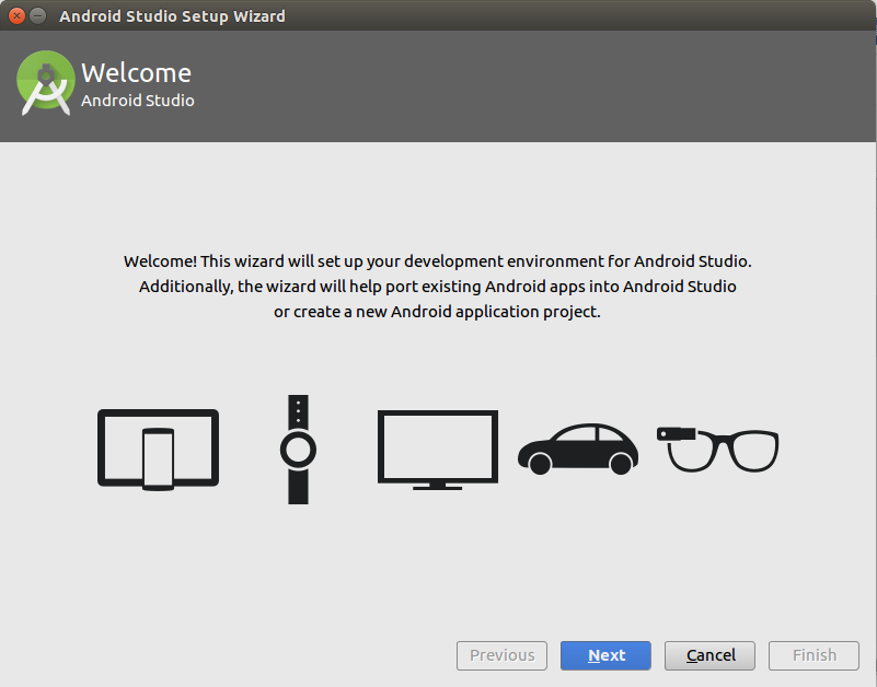 至此android studio安装成功,接着再按第一个网址继续安装即可,注意,一定要仔细阅读网址中描述的安装步骤,不可忽略任何一个环节。