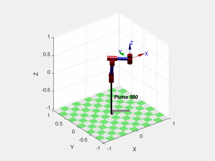 知道了上述轨迹规划函数之后,我们可以通过工具箱自带的PUMA560机器人模型进行试验。在matlab中输入 mdl_pima560 ,我们将获得机器人模型以及几个模型的初始状态参数。