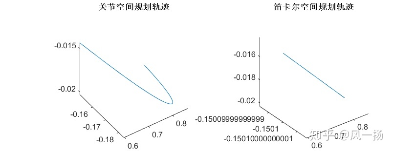 关节空间规划是根据首位位姿,求出关节角度然后再进行规划,而笛卡尔空间规划是直接根据位姿进行规划。为了方便对比,接下来我将给出首位位姿矩阵,然后分别运用上述两种不同的方法进行规划,最后都转换为关节空间进行比较。