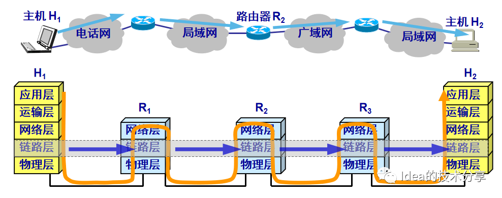 这里从图可以看出链路层的数据传播有些类似于一条链表的形状。