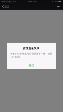 | 4 | ![]() | redirect_url域名与后台配置不一致,错误码:10003 |