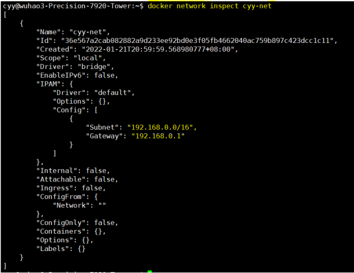 docker network create --driver bridge --subnet 192.168.0.0/16 --gateway 192.168.0.1 cyy-net