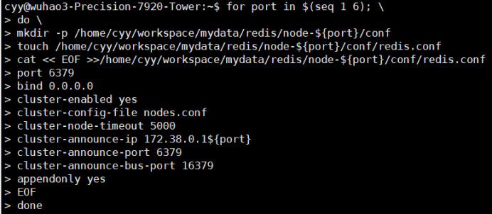 mkdir -p /home/cyy/workspace/mydata/redis/node-${port}/conf
