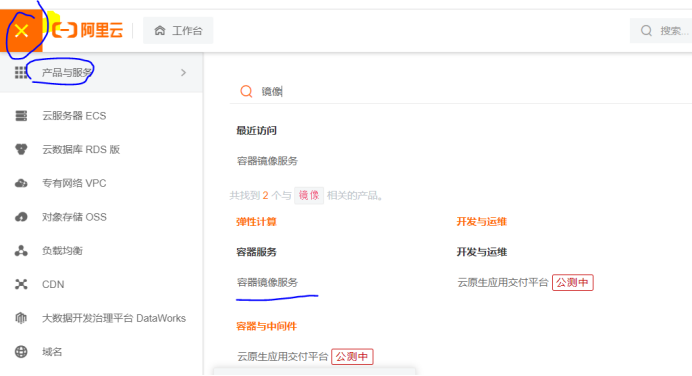 产品与服务(输入 “镜像” 搜索)